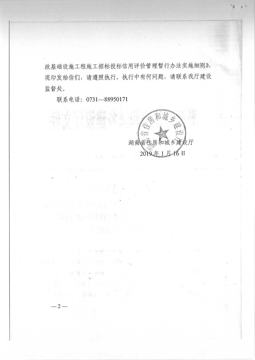 湖南省房屋建筑和市政基礎設施工程施工招投標投標信用評價管理暫行辦法實施細則
