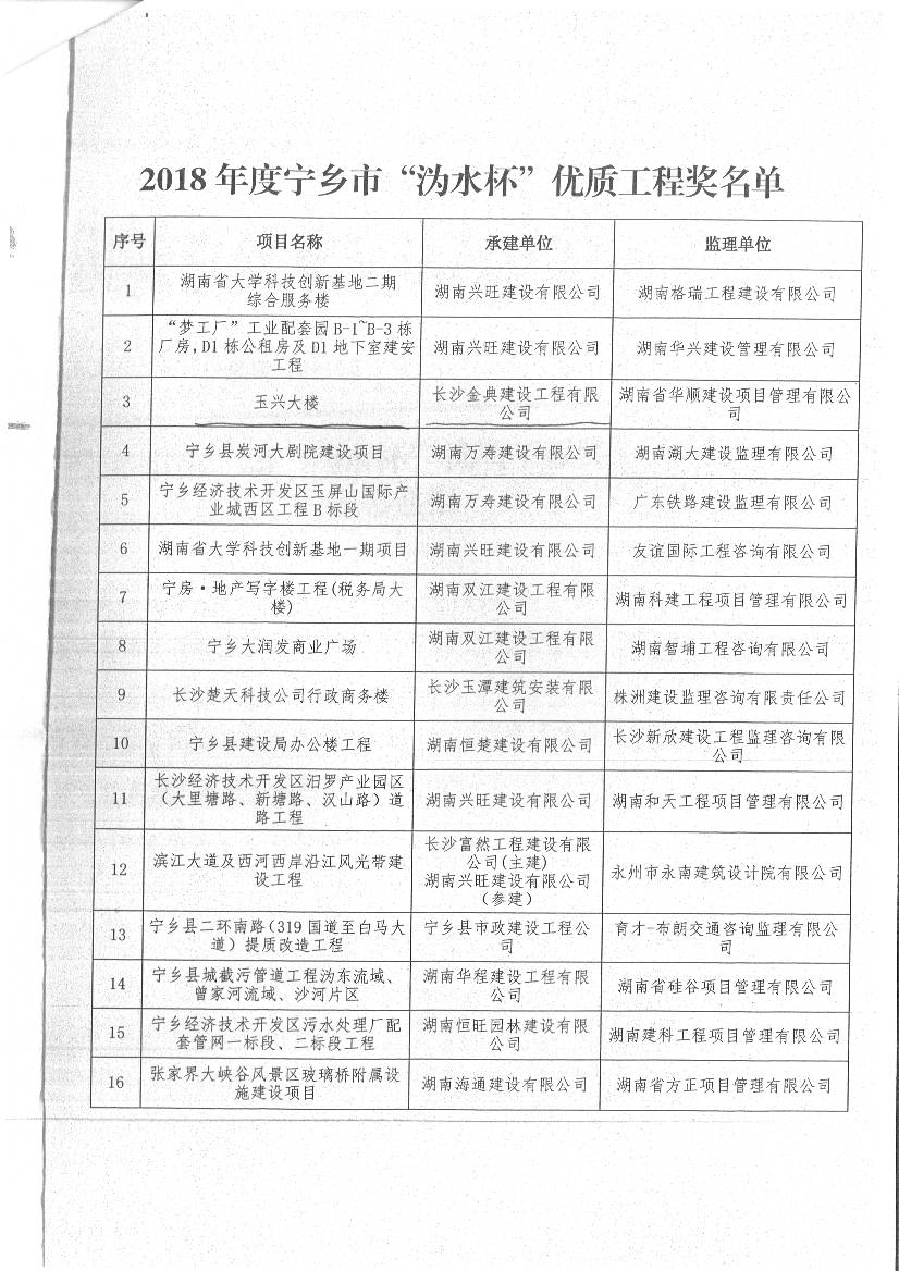 關于寧鄉市第二屆“溈水杯”優質工程獎評選結果的表彰通報