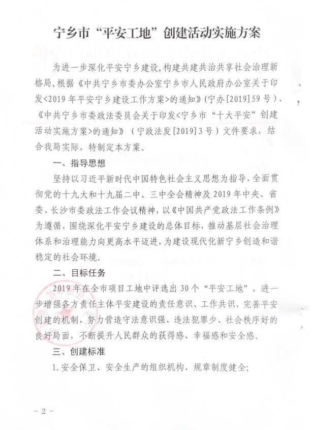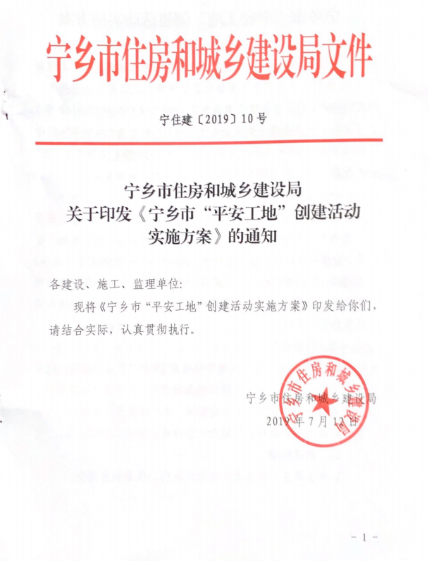 《關(guān)于印發(fā)寧鄉(xiāng)市“平安工地”創(chuàng)建活動實施方案的通知》(寧住建[2019]10號(1)